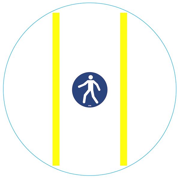 ✅ Clear and comprehensive signage – The combination of double yellow lines and a pedestrian symbol provides an instant and unmistakable indication of pedestrian crossing areas.